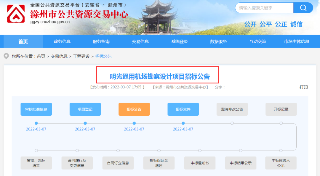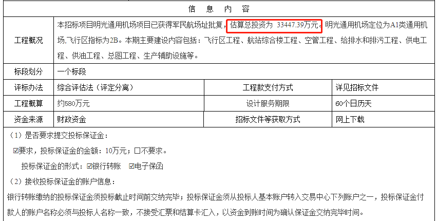 总投资约3.3亿!滁州这个通用机场勘察设计正式招标!