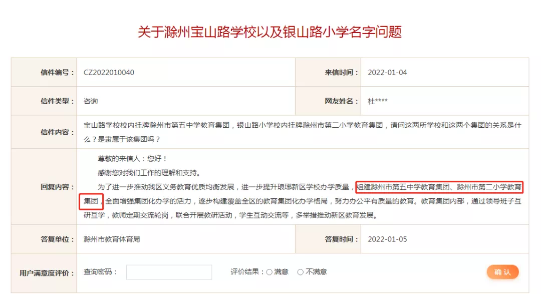 滁州市教育体育局答复: