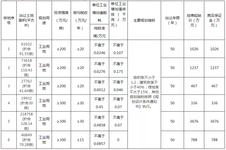 具体情况见下表(宗地详细规划指标及要求详见出让文件)