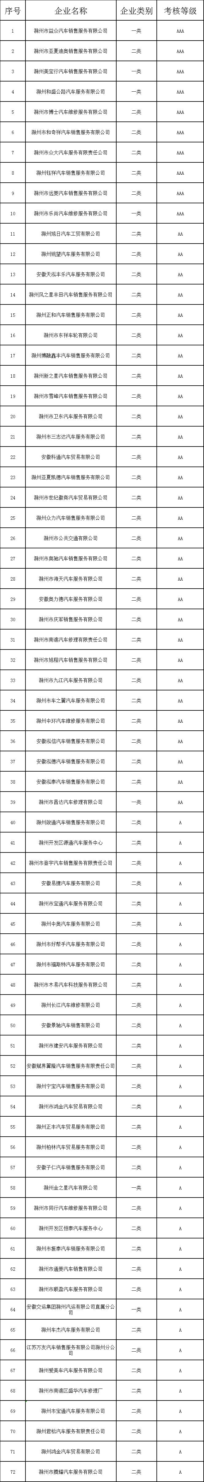 2021年度滁州市直备案一、二类机动车维修企业质量信誉考核结果公示表