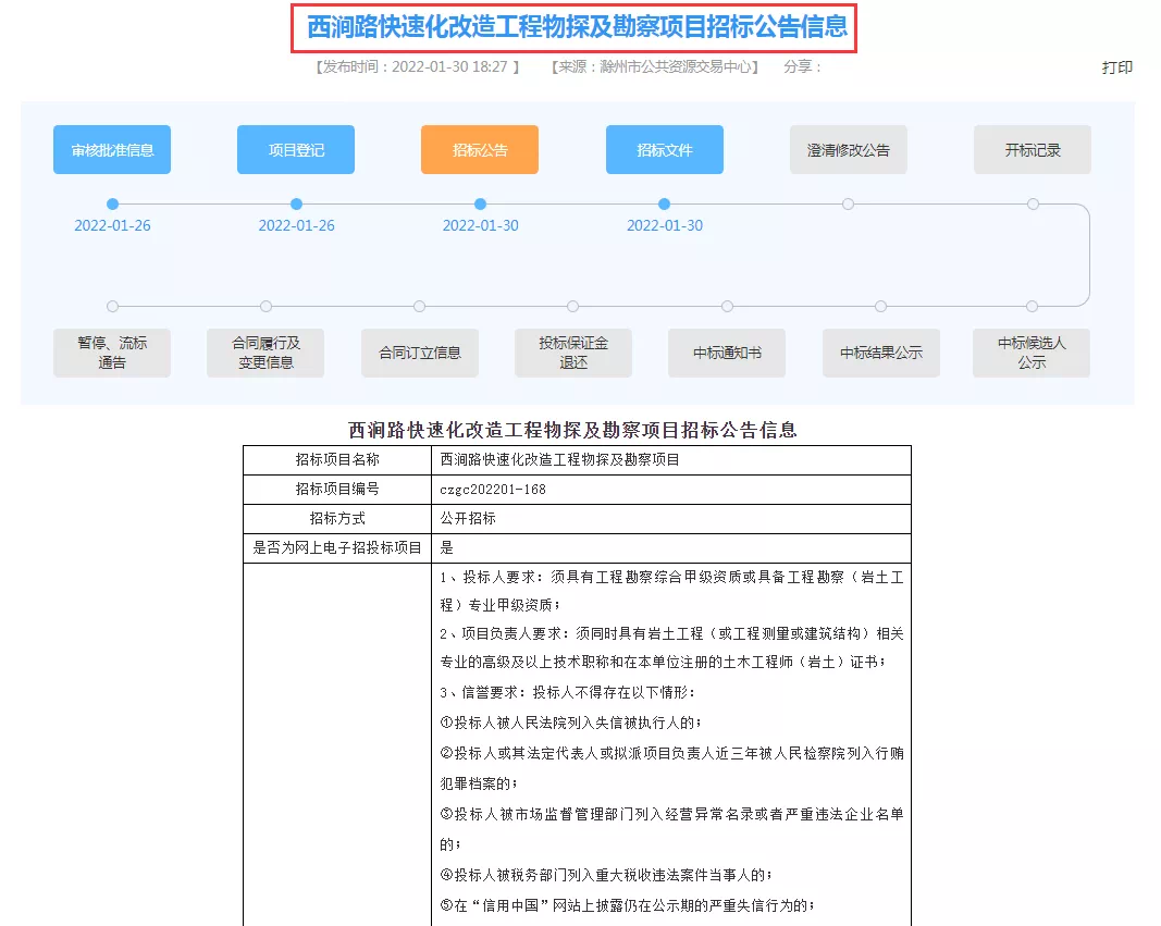 招标项目名称:西涧路快速化改造工程物探及勘察项目