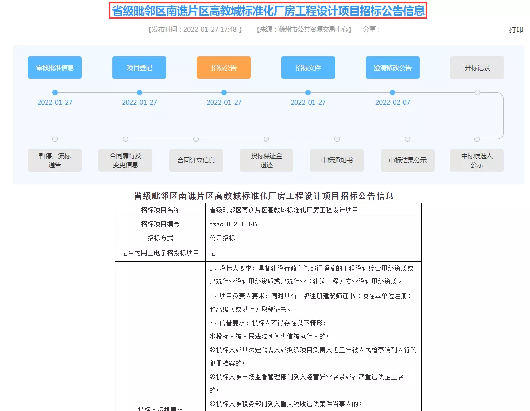 招标项目名称:省级毗邻区南谯片区高教城标准化厂房工程设计项目