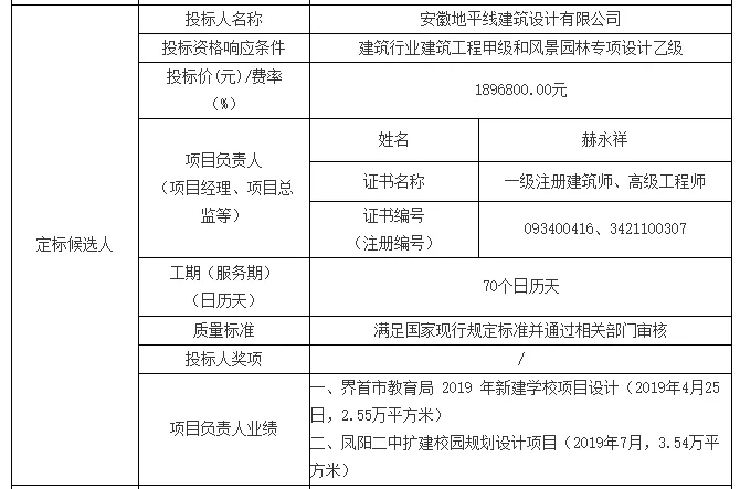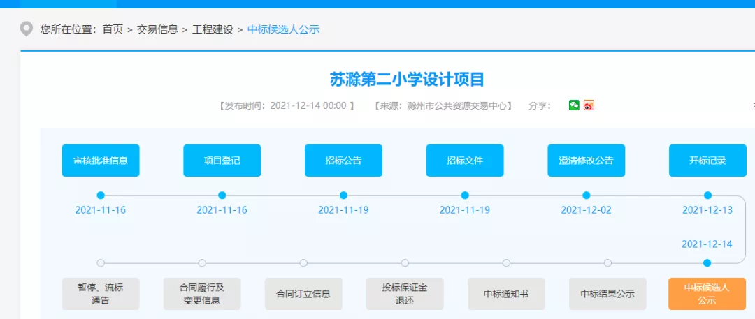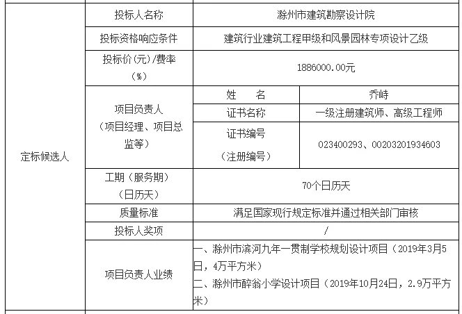 目前,苏滁第二小学设计项目中标候选人已对外公示,分别是: