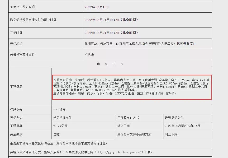 滁州市公共资源交易中心发布《中新苏滁高新技术产业开发区2022年度排名前列批市政工程项目招标公告信息(资格预审)》,中新苏滁高新区一大批市政工程项目招标。