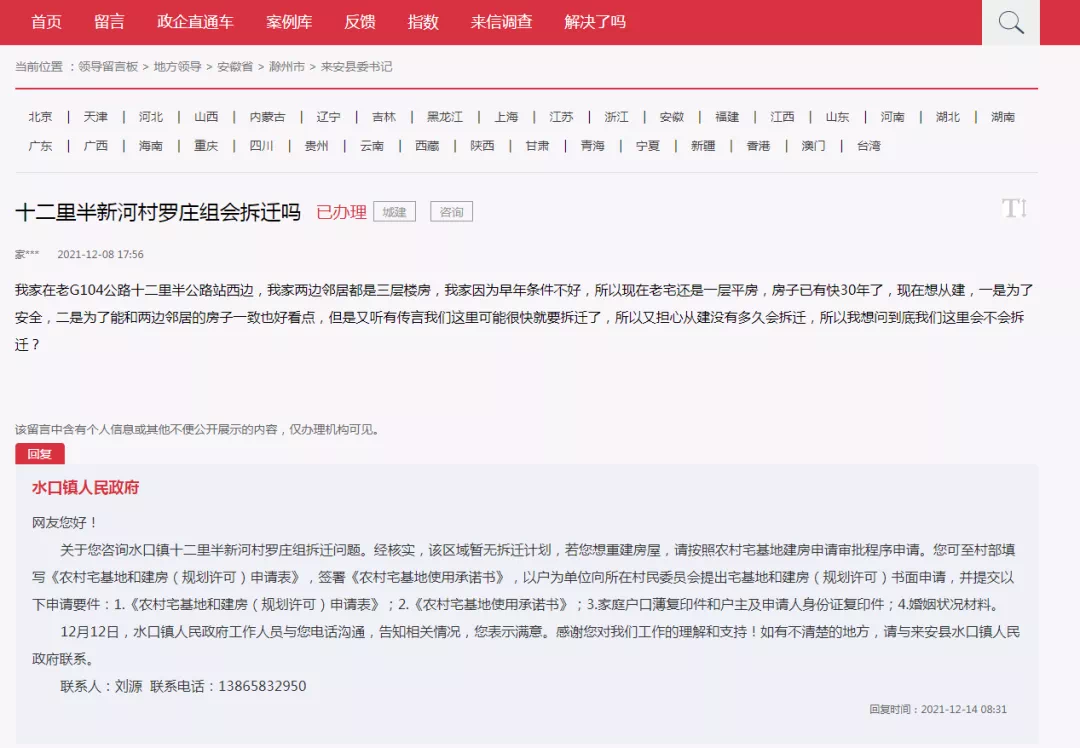 滁州这里要拆迁?关于滁州这里一村庄拆迁问题回复......