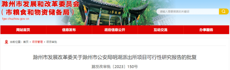 你局《关于申请审批滁州市公安局明湖派出所项目可行性研究报告的函》及相关材料收悉,结合项目评估报告意见,经研究,批复如下: