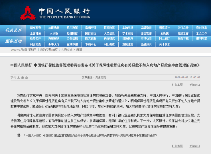 2月8日,人民银行、银保监会联合发文,明确保障性租赁住房有关贷款不纳入房地产贷款集中度管理。新规的落地,不论是对减轻房企负债投资压力,还是打消银行发放涉房贷款诸多顾虑都有积极作用。与此同时,此次调整延续了去年三季度以来房地产金融调控政策在坚持“房住不炒”主基调下,实施微调以纠偏市场悲观预期的操作思路。