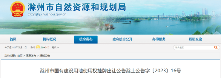滁州市国有建设用地使用权挂牌出让公告滁土公告字〔2023〕16号