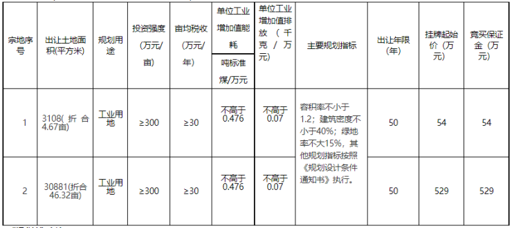 一、挂牌出让宗地位置、规划指标、起始价、保证金及出让年限