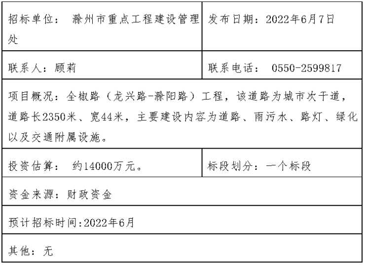 总投资1.4亿!全椒路(龙兴路-滁阳路)工程项目招标计划公布!