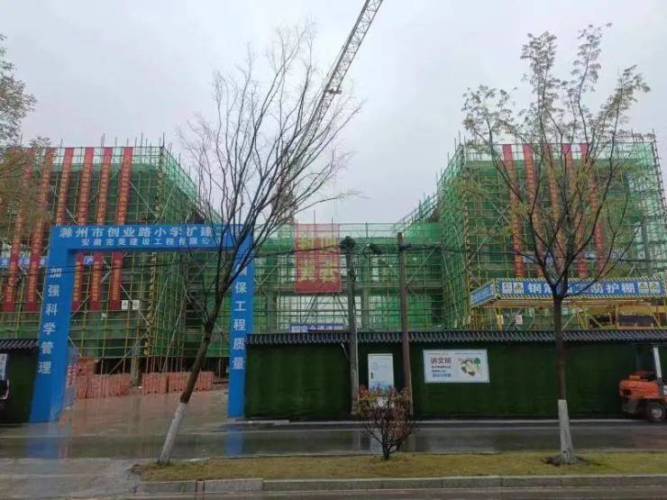 近日,由南谯区重点工程建设管理处代建的创业路小学扩建项目教学楼主体结构工程顺利封顶,比计划工期提前三个月,计划2023年9月师生迁入新教学楼。