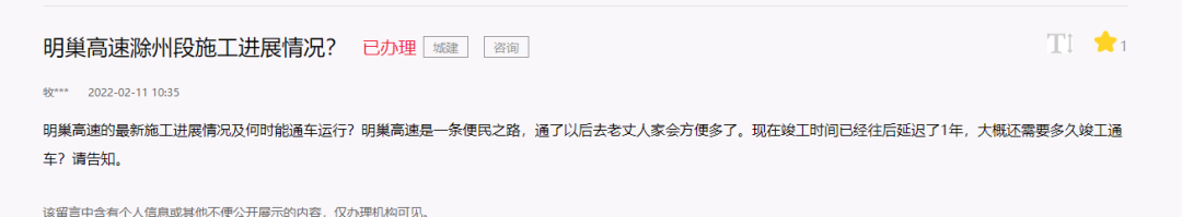 答:尊敬的刘先生:您好!您关于“明巢高速滁州段施工进展情况”的留言收悉,现答复如下: