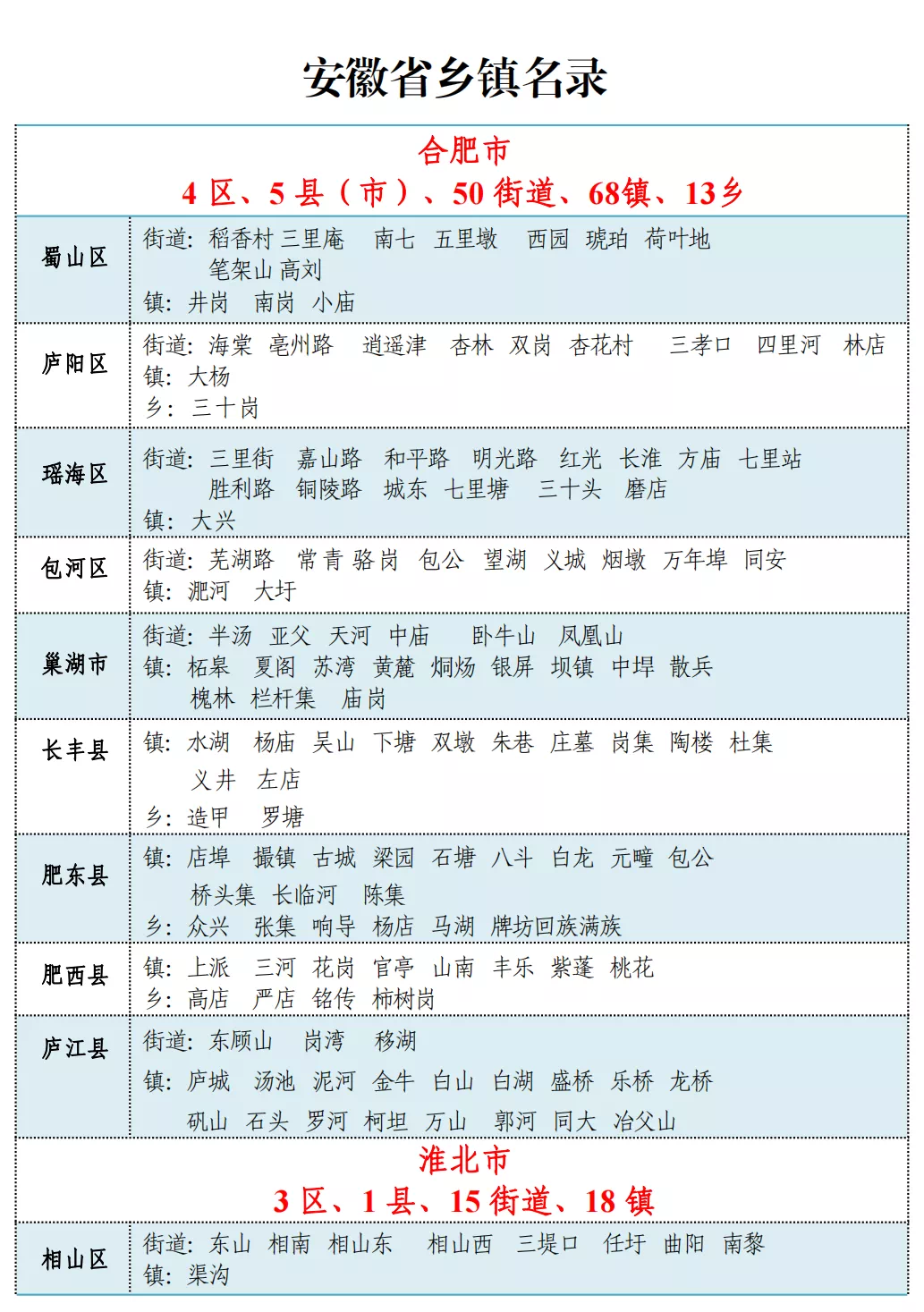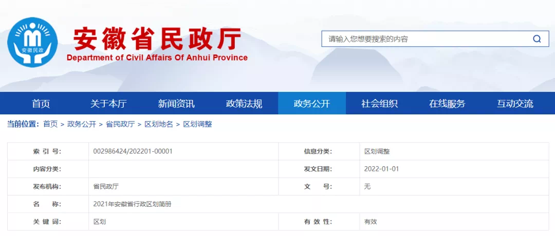 日前安徽省民政厅公布2021年安徽省行政区划简册