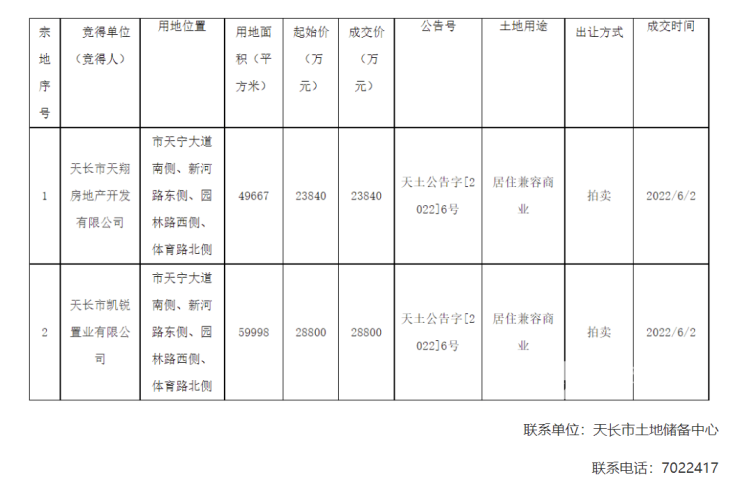 2022年6月2日,天长市自然资源和规划局在市公共资源交易中心公开出让2宗商住用地,成交2宗。